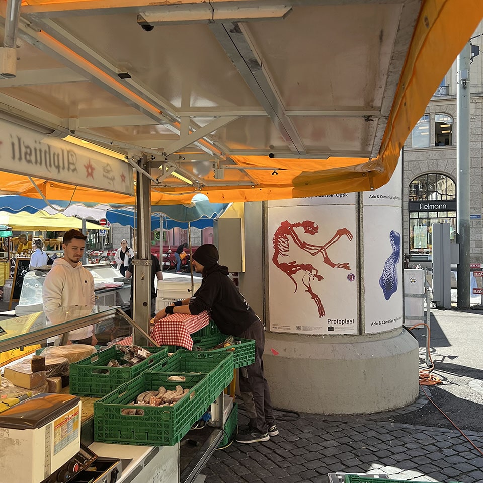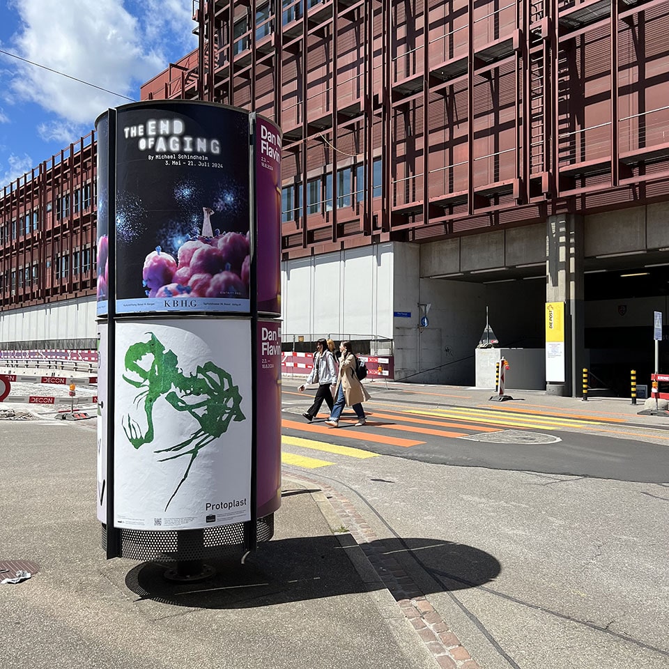 eployed throughout the city of Basel much like the ads that sell goods and services to the passerby, a set of 10 different motifs was displayed on over 100 billboards, bringing the art experience to all urban dwellers alike. Embedded among the cultural publicity associated to Art Basel, the posters may have gone unnoticed to onlookers. But it doesn’t matter: the benefit still applies.