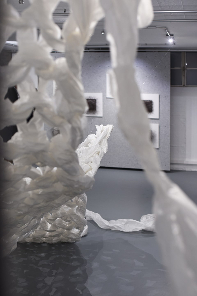 Neben den plastischen Objekten zeigt die Ausstellung auch eine Auswahl ihrer Tuschzeichnungen. Sie erscheinen wie reingezoomte Momente, lassen offen, ob wir uns in einem Mikro- oder Makrokosmos bewegen. Manche Arbeiten zeigen Dinge im Ausschnitt, die sich im Ganzen betrachtet ganz anders darstellen würden – Dinge werden aus dem Kontext genommen. Ein rätselhaftes Verwirrspiel beginnt – Enigmata!