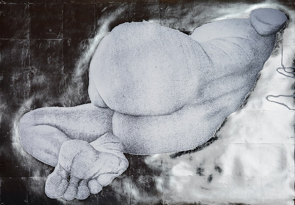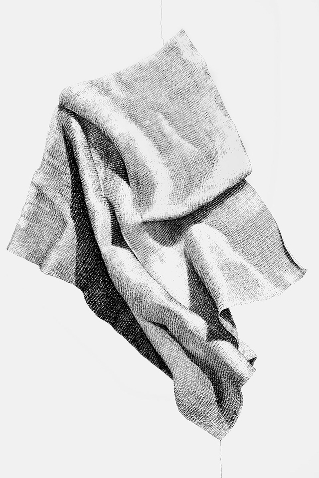 Hier lässt sich der Bogen schlagen zu Monika Supés Arbeiten. Der Aspekt des Umhüllens fasziniert die Künstlerin, die Architektur umhüllt ja im weitesten Sinne auch und unser eigener Körper ist ja in gewisser Weise eine Hülle. Wir hüllen uns in Geheimnis, umhüllen uns, schützen uns, grenzen uns ab. Ebenso wie Man Ray gibt sich Monika Supé nicht mit nur einer Hinsicht zufrieden. Wir sehen Zwei- und Dreidimensionales, die Grenzen sind oft fließend. Was uns als Rauminstallation und in Form von Objekten begegnet, setzt sich fort in Fotografie, Zeichnung und Relief.
