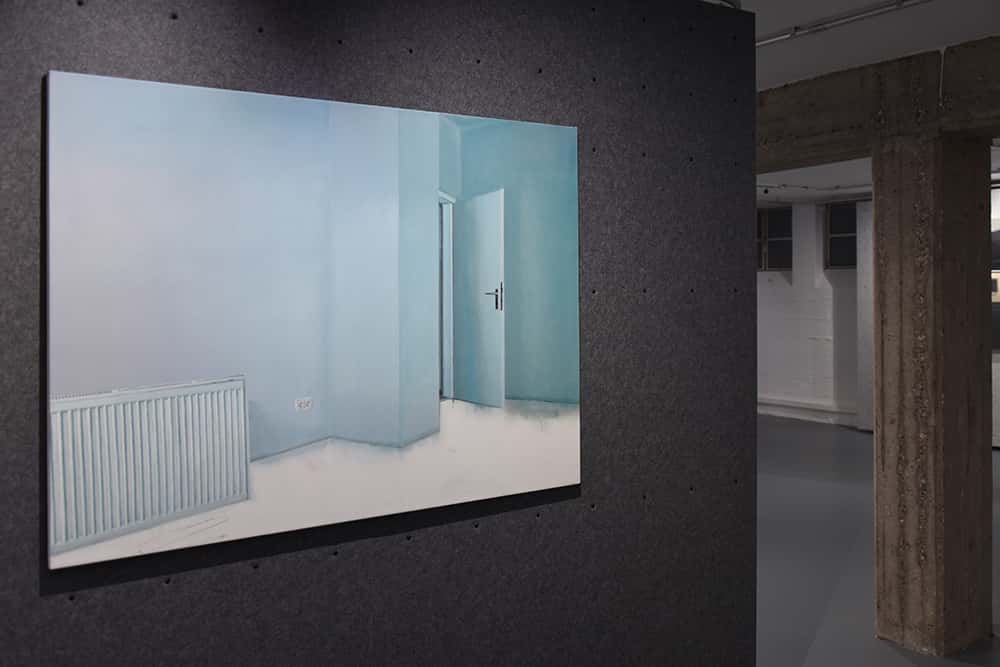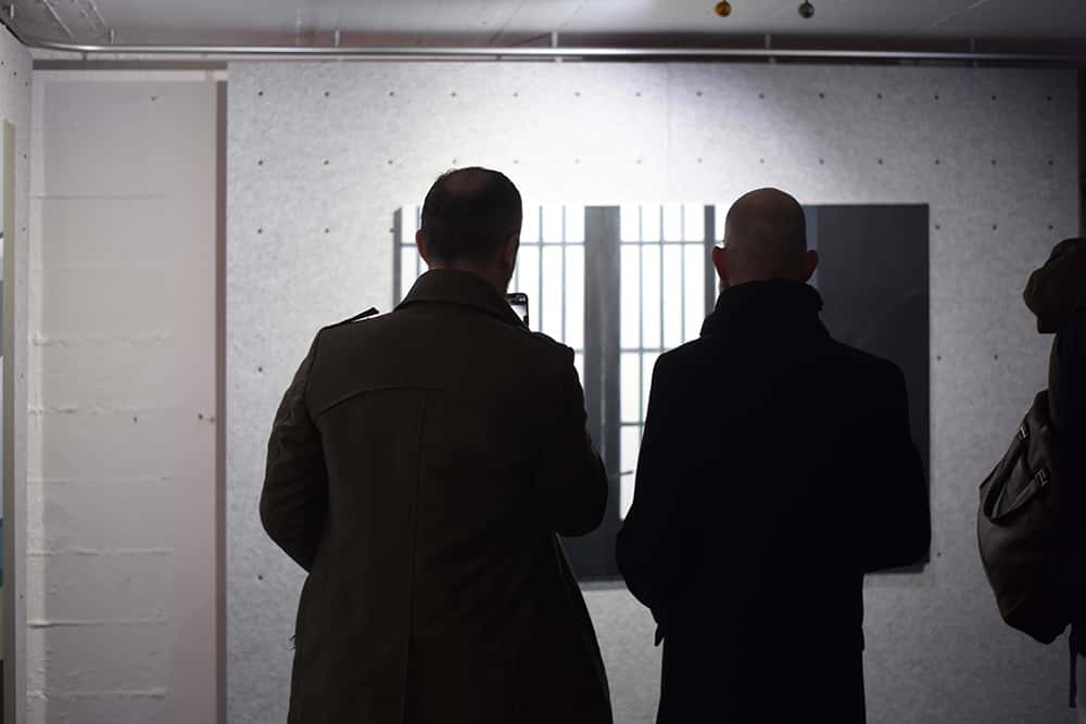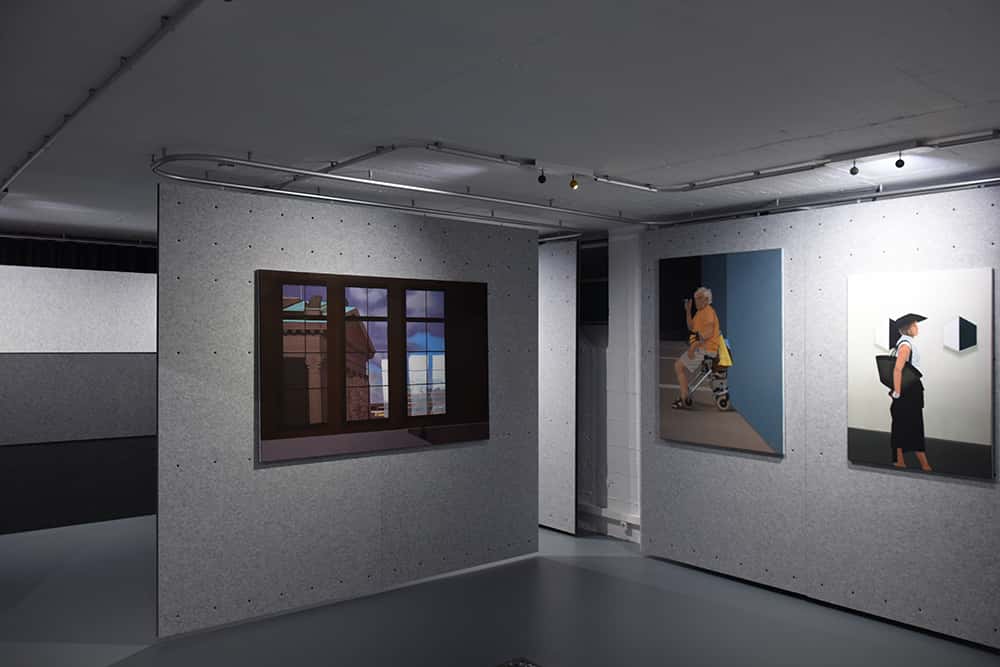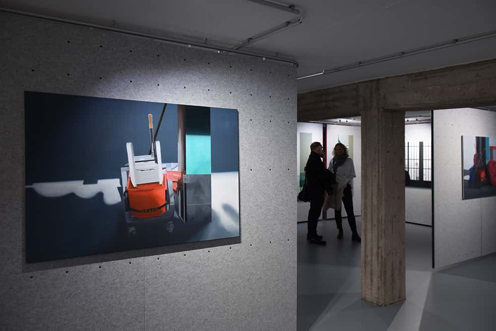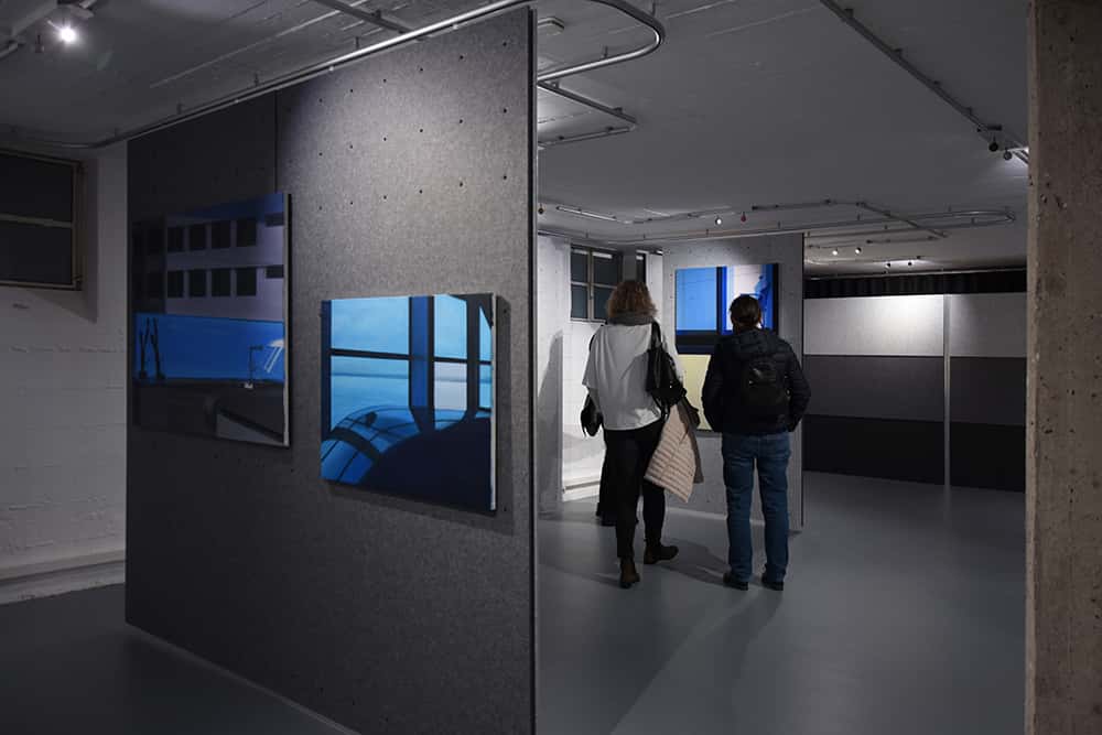 Menschensilhouetten erscheinen vor und hinter einem Gitter, ein verlassener Putzwagen steht in einem Flur… – wir treffen auf Lebensspuren in städtischen Raumsituationen. Dabei ist es uns als Betrachtern überlassen, eine Geschichte zu der jeweiligen Situation zu erfinden. Andrea Eitel erschafft somit Gedankenräume für unsere eigene Wahrnehmung. Was wir wahrnehmen, ist entscheidend.