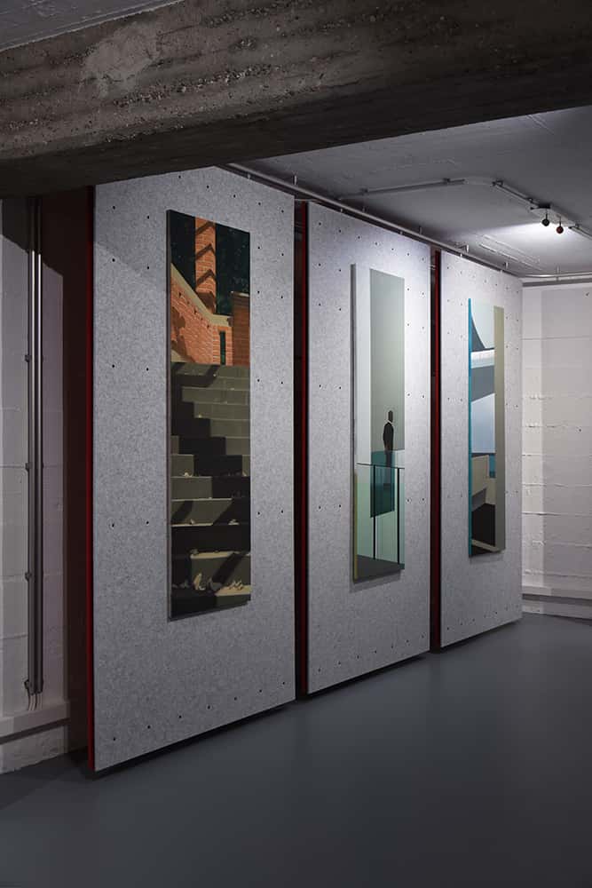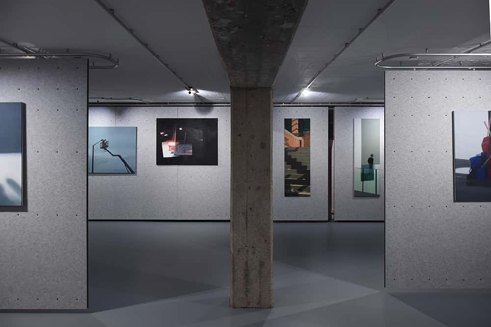 Mal finden wir uns vis-à-vis einer verlassen Tiefgarage, die sich wie dafür geschaffen in die Räume der Galerie Sammlung Amann einfügt, als wäre sie eine Fortsetzung des Raumes. Dann finden wir uns in einem Museum wieder, einer Aufsichtsperson folgend.