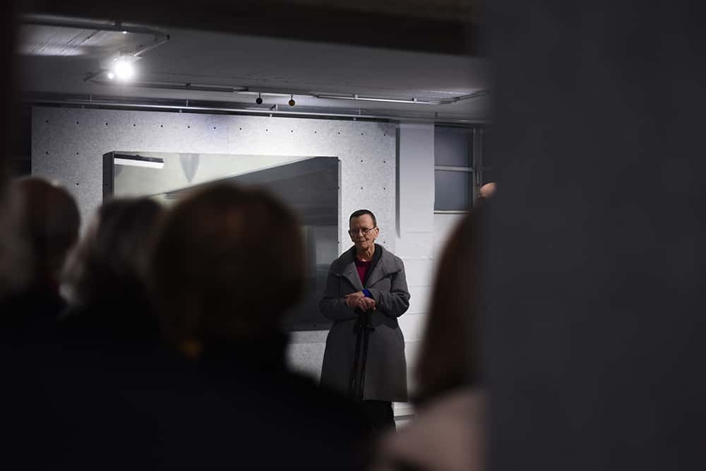 Die Künstlerin schafft Distanz, wenn sie unseren Blick auf den Bodensee durch die Glasscheibe der Fähre lenkt. Oder unseren Blick auf den Neckar von einem Industrieobjekt leiten lässt.