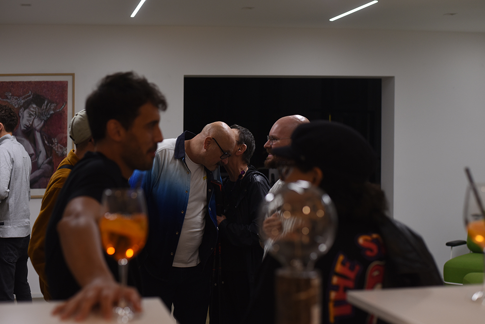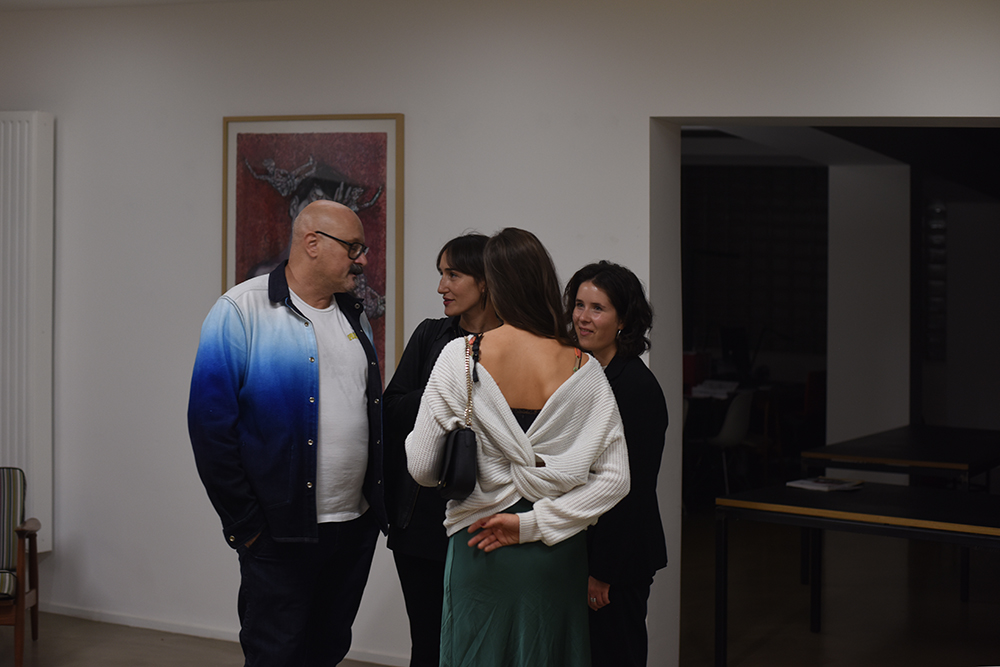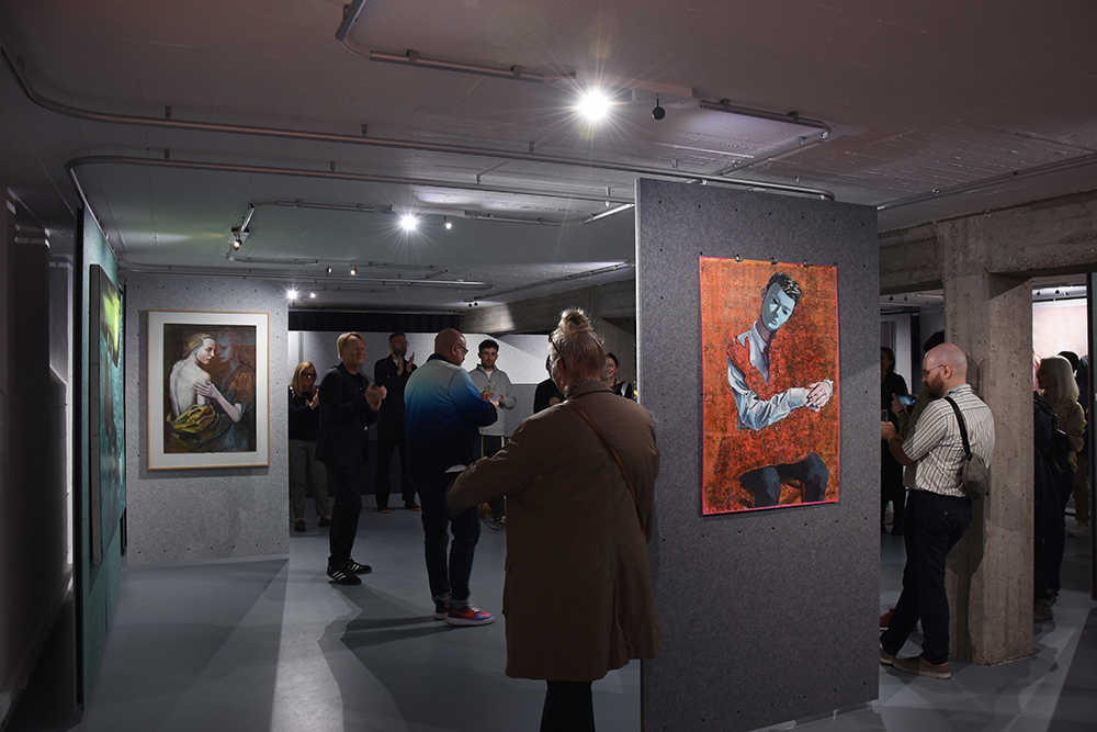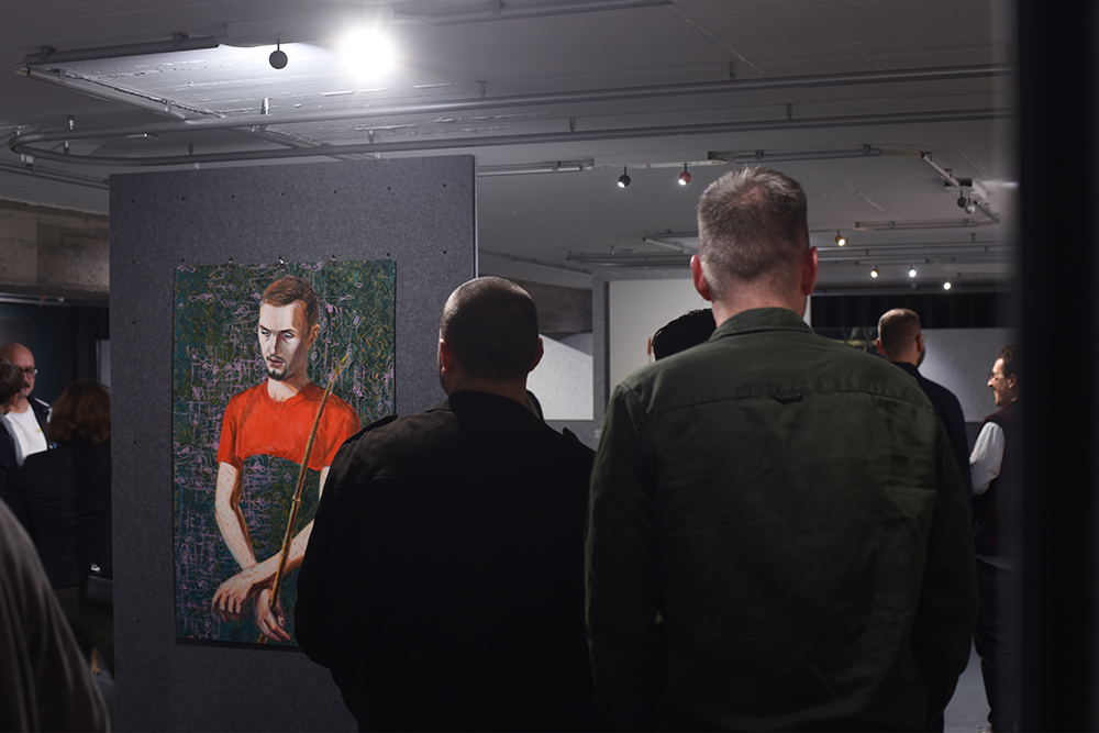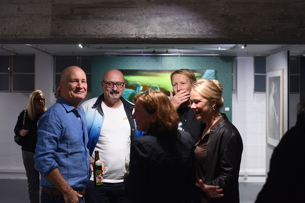 Häufig verbindet er in seinen Bildern reale Situationen mit surrealen Elementen – so kombiniert er realistische Darstellungen mit grafischen, durch Tapentenmusterwalzen erzeugten Hintergründen –, was den Szenerien bei genauerem Betrachten einen Twist verleiht und das Gesehene in einen aus der Realität ver-rückten Kontext katapultiert.