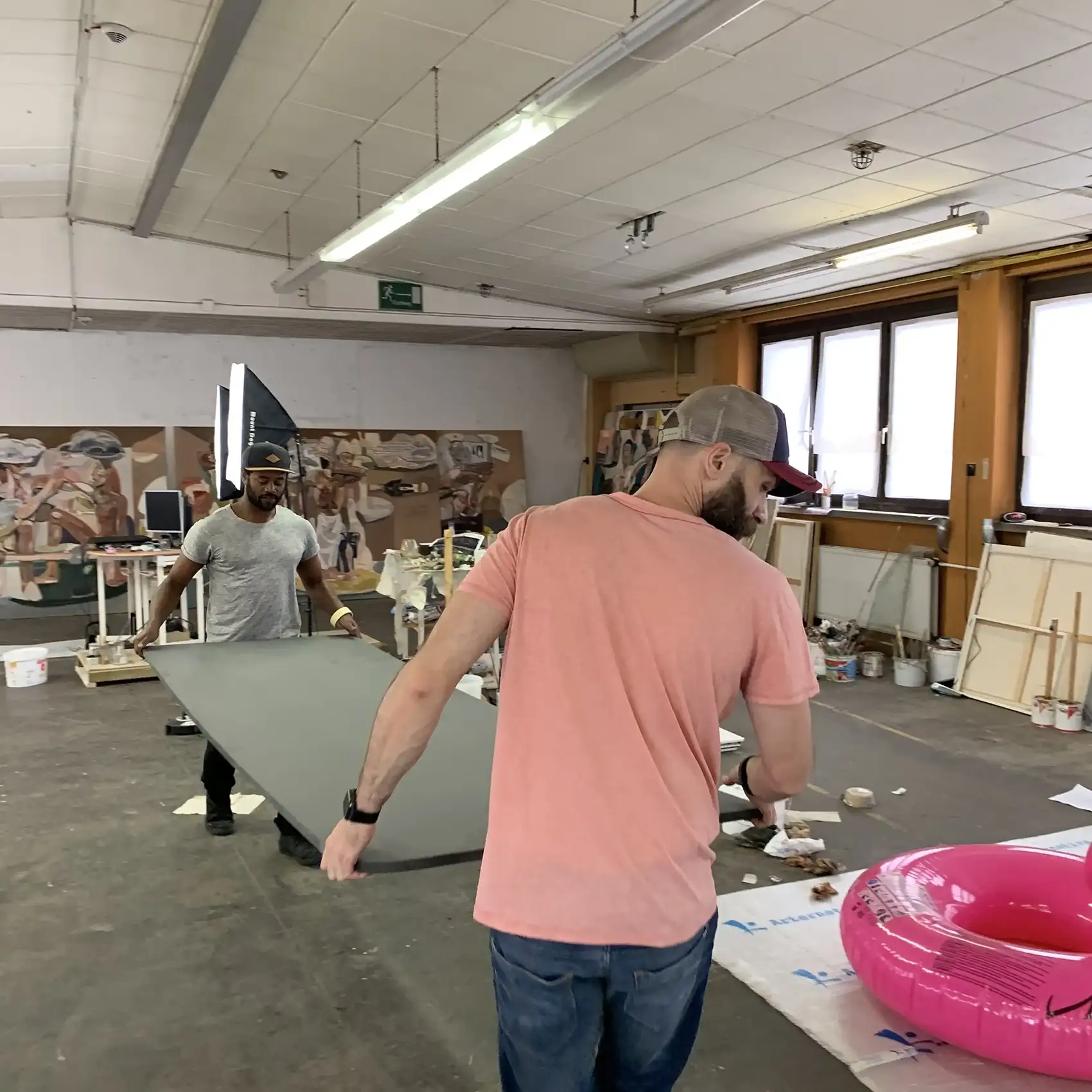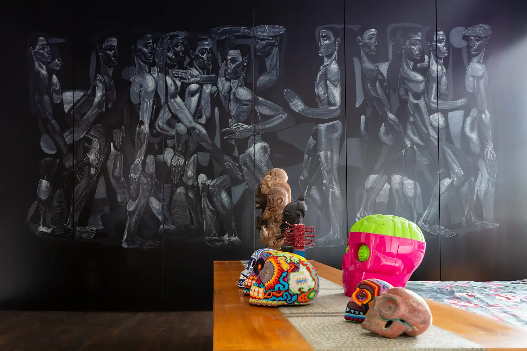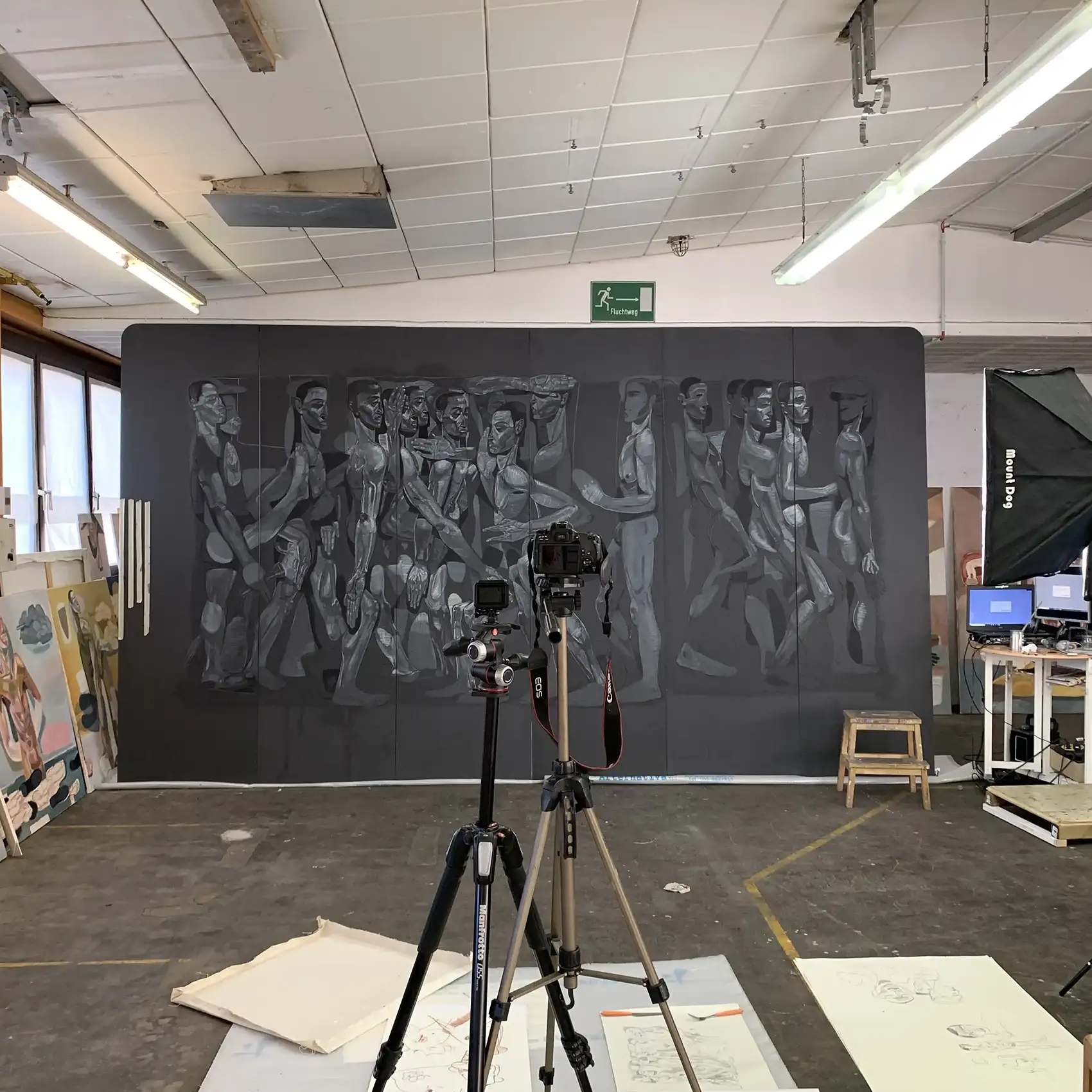 Im Jahr 2019 beauftragte die Sammlung Amann den befreundeten Stuttgarter Maler Tesfaye Urgessa mit einer monumentalen Arbeit, die die Front eines Einbaumöbels in den privaten Räumen bilden sollte.